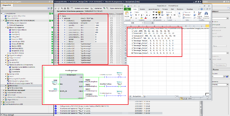 - Carico il file CSV nella CPU e poi tento di trasferire il contenuto su DB utilizzando questo blocco "RecipeImport".